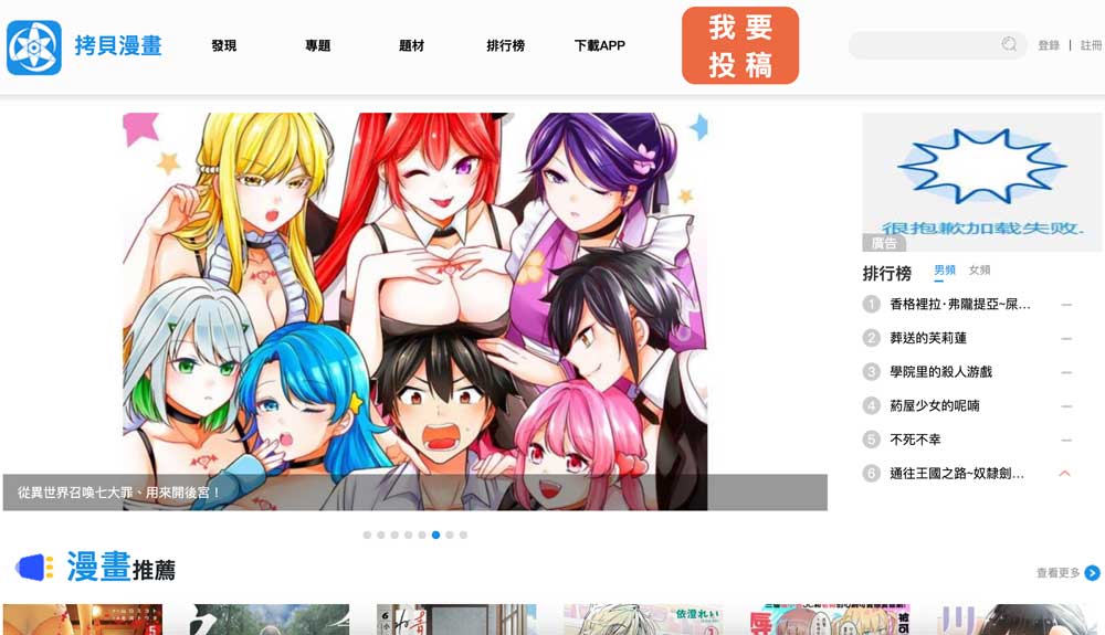 拷貝漫畫 —— 為全球華人提供高質量中文全本漫畫、同人志。海賊王、火影忍者,哥布林殺手、進擊的巨人、龍珠、Magi魔笛、妖精尾巴、Fate/grand order、艦隊收集 艦娘、Granblue Fantasy 碧藍幻想、東方project、偶像大師、Love Live、同人志、18禁本子、全彩等,應有盡有。