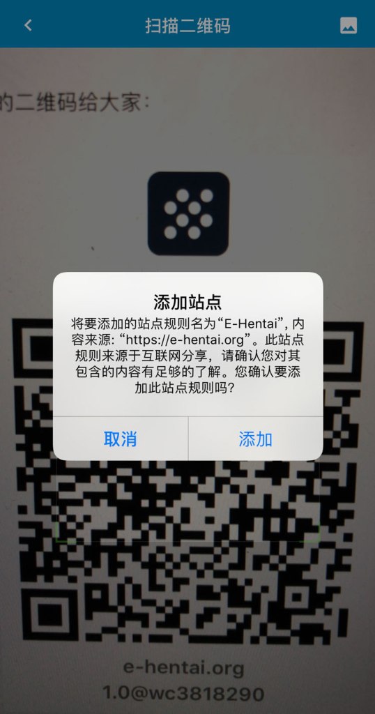 4. 找到并扫描你想要的站点规则二维码,便可自动导入站点规则。本站分享的所有站点规则都可以在《站点规则列表》一文中找到。